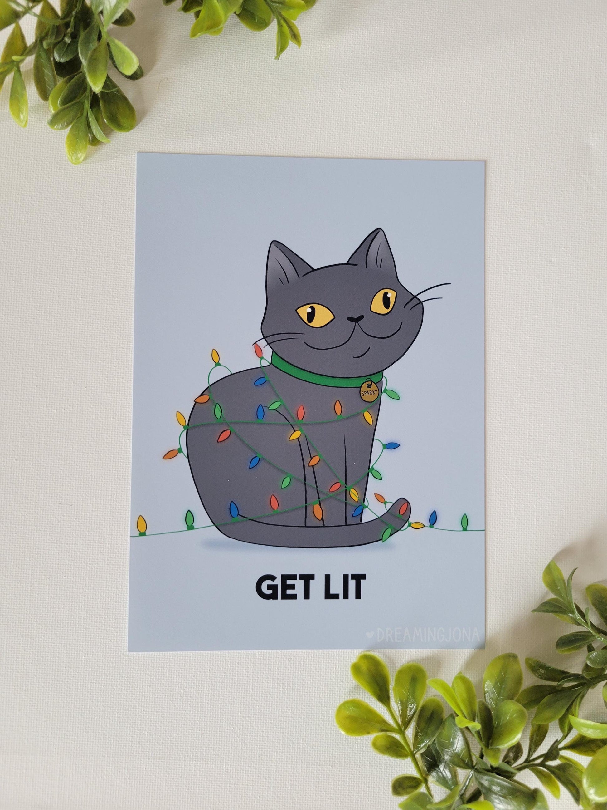 Get Lit | Funny Holiday Cat Art Print 5 x 7